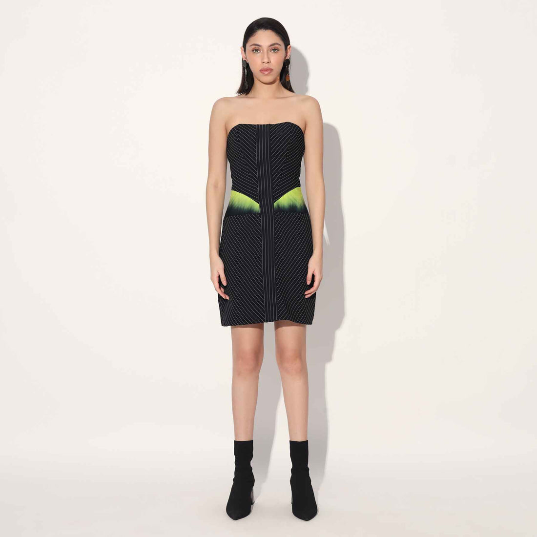 Nova," a striking mini dress that’s a canvas of abstract hues. Featuring voluminous balloon sleeves...