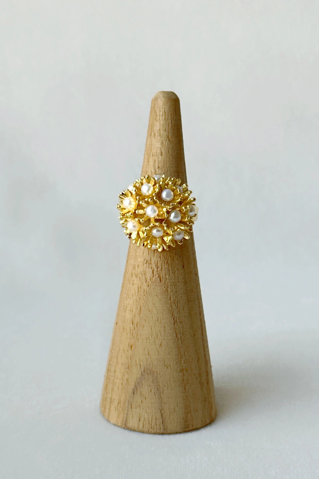 Sparkling like the first sunshine of spring, this delicate floral pearl ring celebrates the changing...
