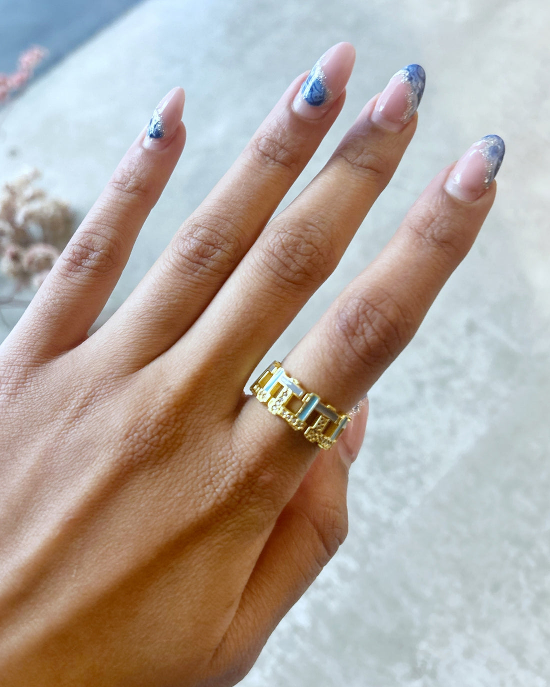 Handcrafted in brass plated in 18k gold. Cubic Zirconia Ring Size : Free Adjustable Care...