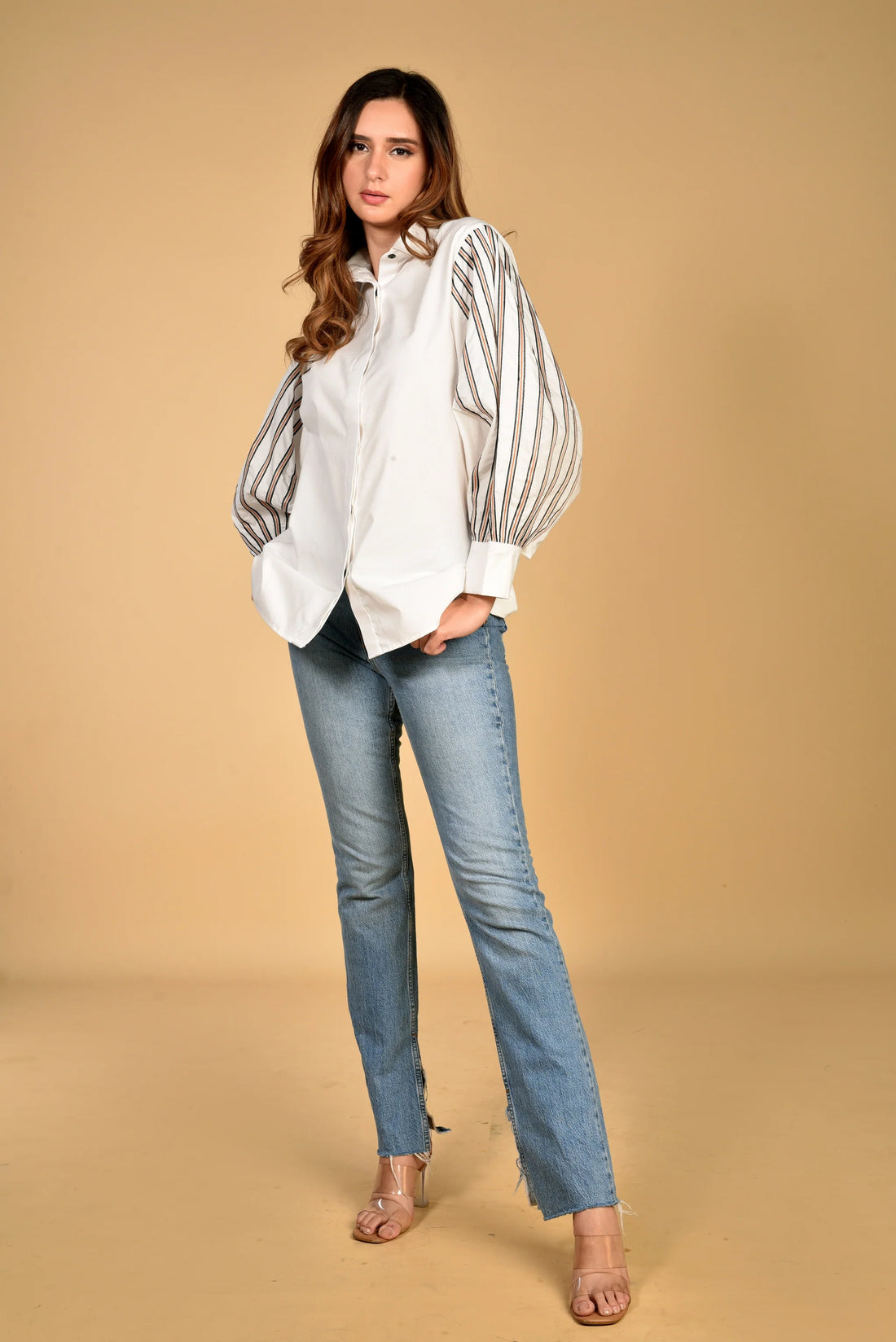 The Selena shirt features a balloon sleeve with striped border detailing that gives a classic...