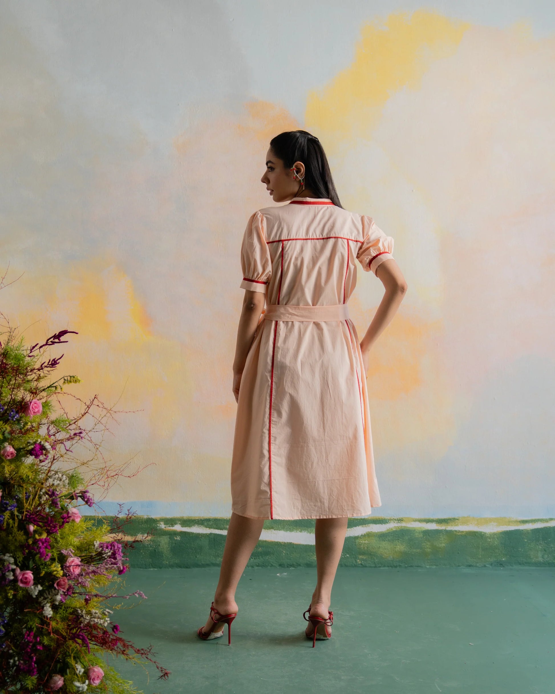Like a walk through a blooming garden, the Tiger Lily Shirt Dress is crafted in delicate apricot cotton and adorned with vibrant tiger lily embroidery. The fiery orange florals breathe life into its softly tailored midi silhouette, while contrast piping adds a crisp, modern edge. A perfect blend of nature’s beauty and contemporary design.