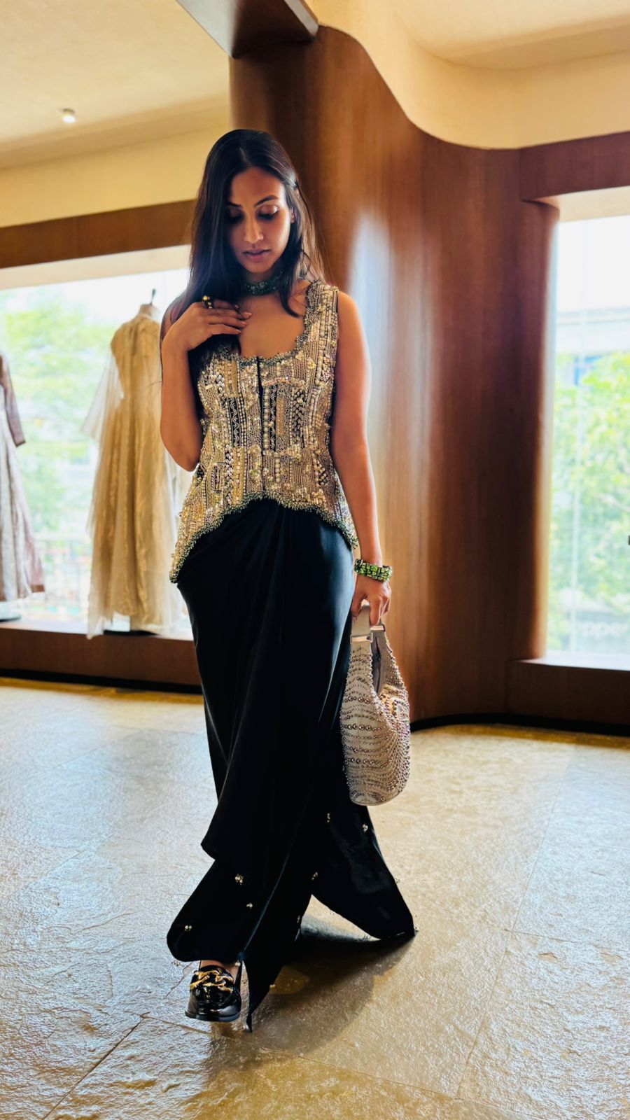 This stunning bag is made with different sizes of Cabochon in gunmetal on grey silk. It’s a must have.