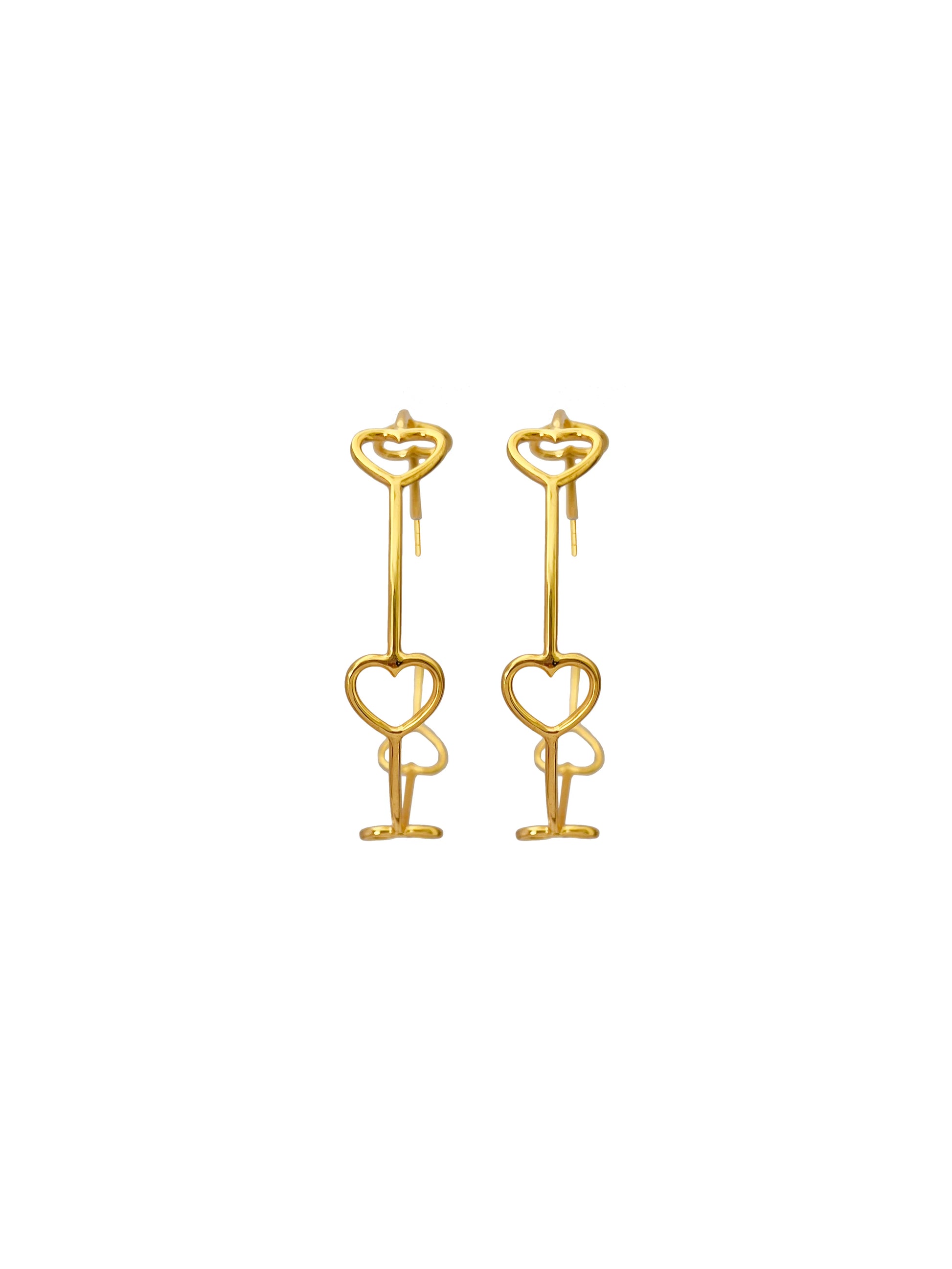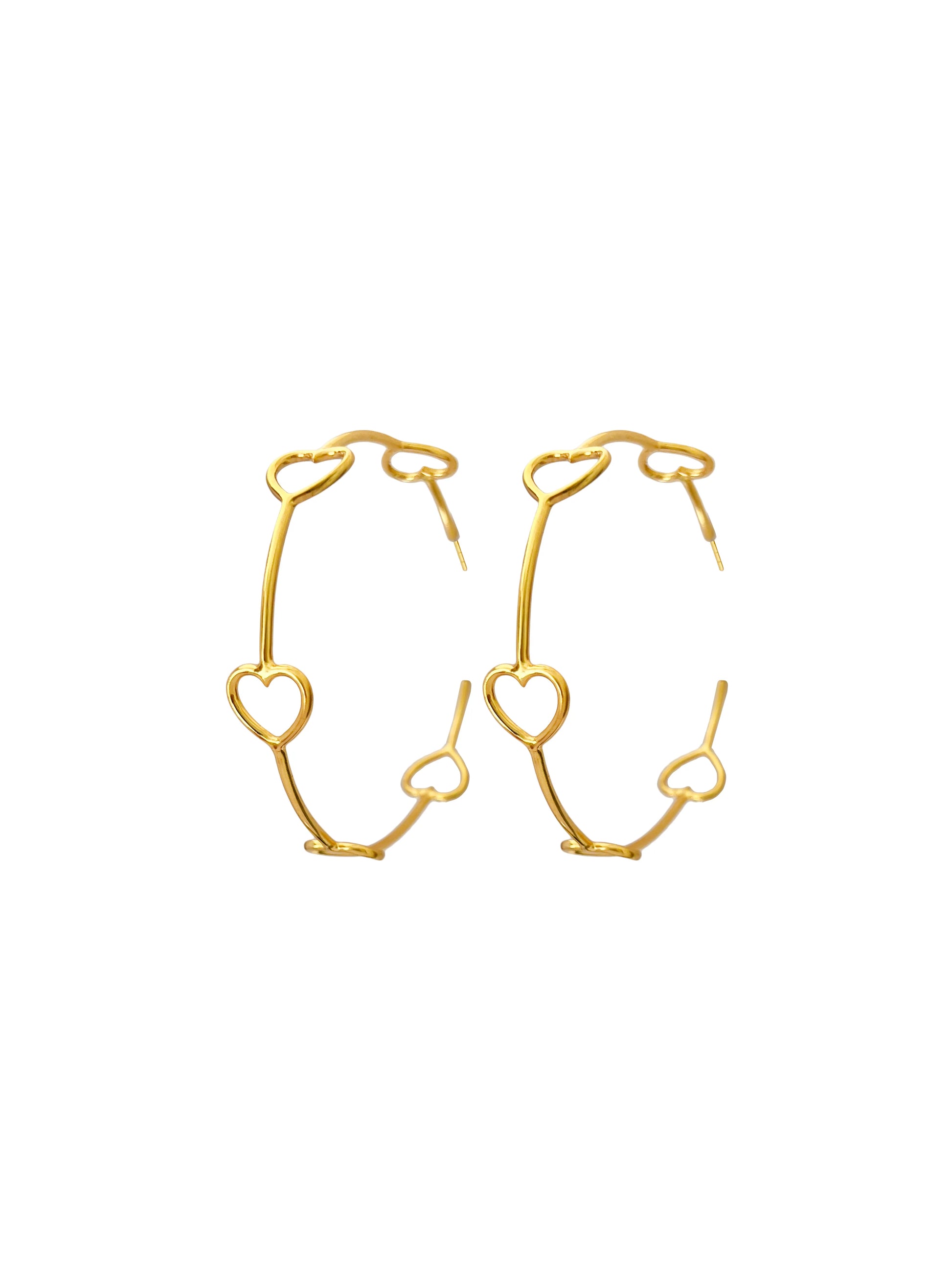 Can never have enough heart in our pieces! Minimal, gold hoops to pair with your white tee and blue jeans.