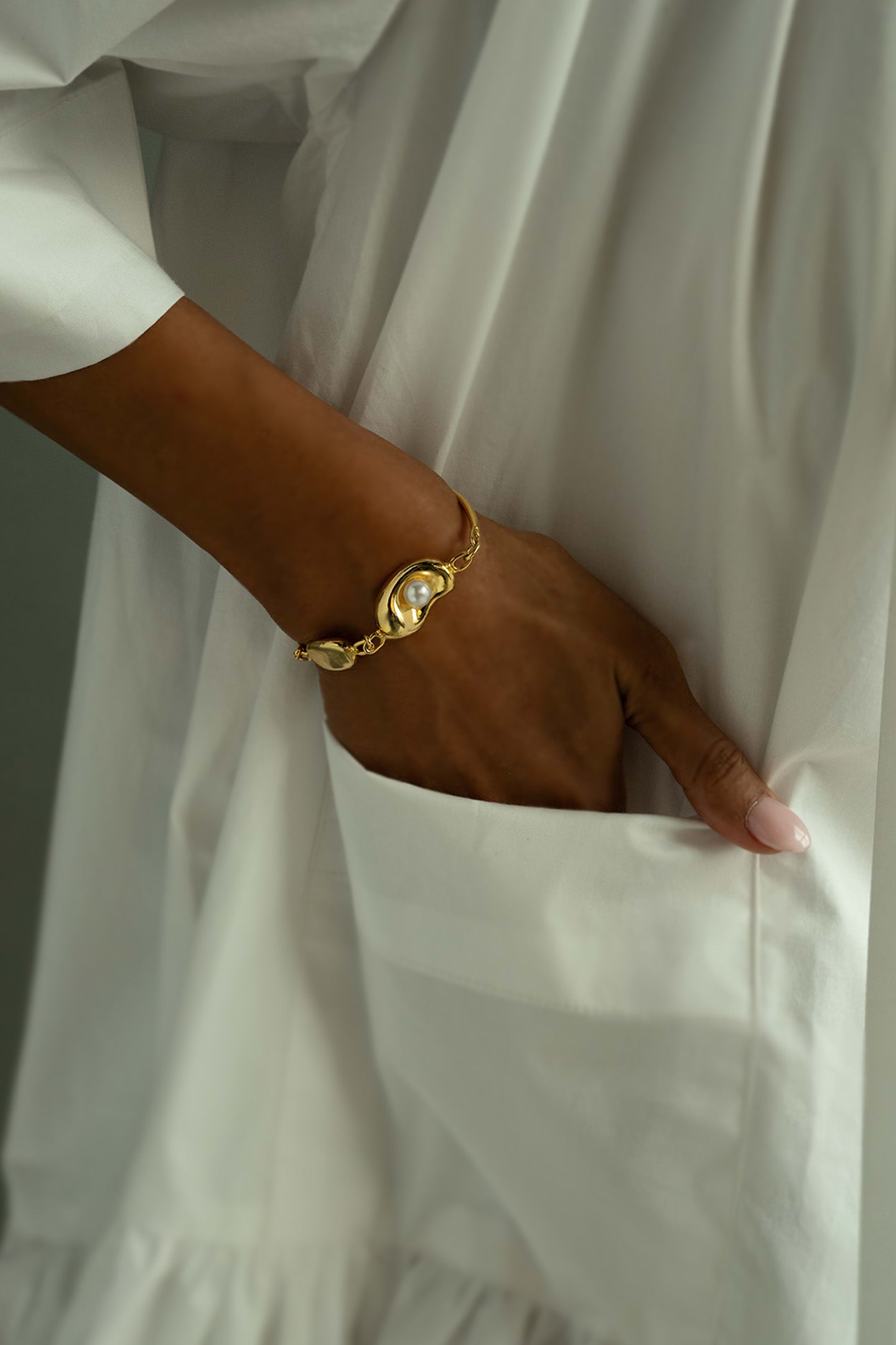 Piece is made in Brass and South Sea Natural Pearls, coated in 22K gold-plating/rhodium and anti-tarnish treated.