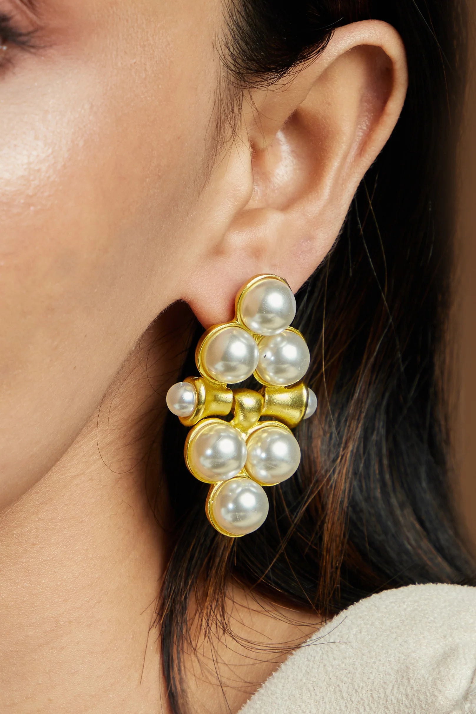 Earrings features a uniquely placed pearl stud earrings with vintage gold polish. These classic studs combine the timeless beauty of lustrous pearls with the sophisticated charm of vintage gold. Perfect for adding a touch of grace to any ensemble, these earrings are a must-have for those who appreciate both tradition and a hint of retro flair.