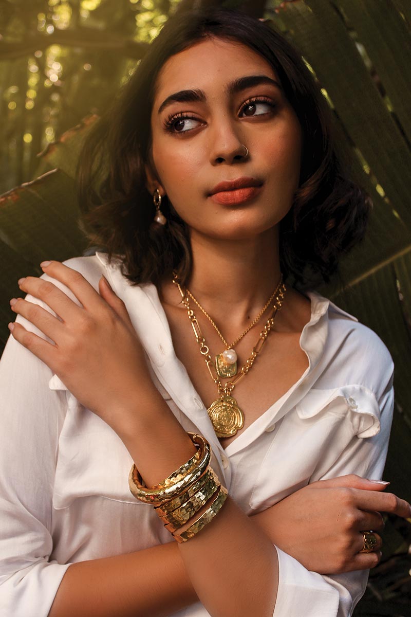 Bring a sense of soul and timeless style to your identity. The hammered bangle stack lends the perfect modern twist to the classic bangle.