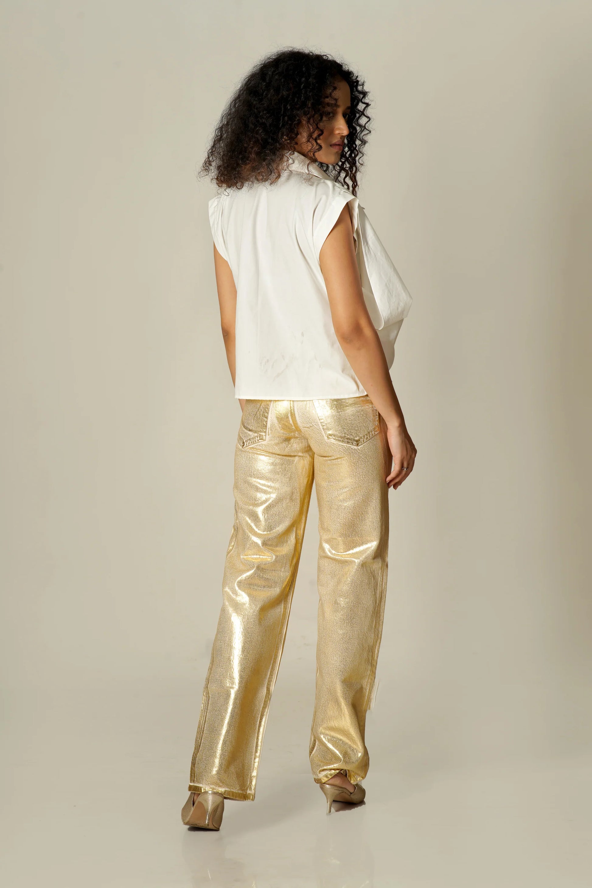 Bold yet refined, this overlap shirt features a stylish silhouette with edgy sequins necklace detailing for a contemporary twist. Paired with pants or a skirt, this outfit exudes effortless glam, perfect for evening soirées or statement daywear.