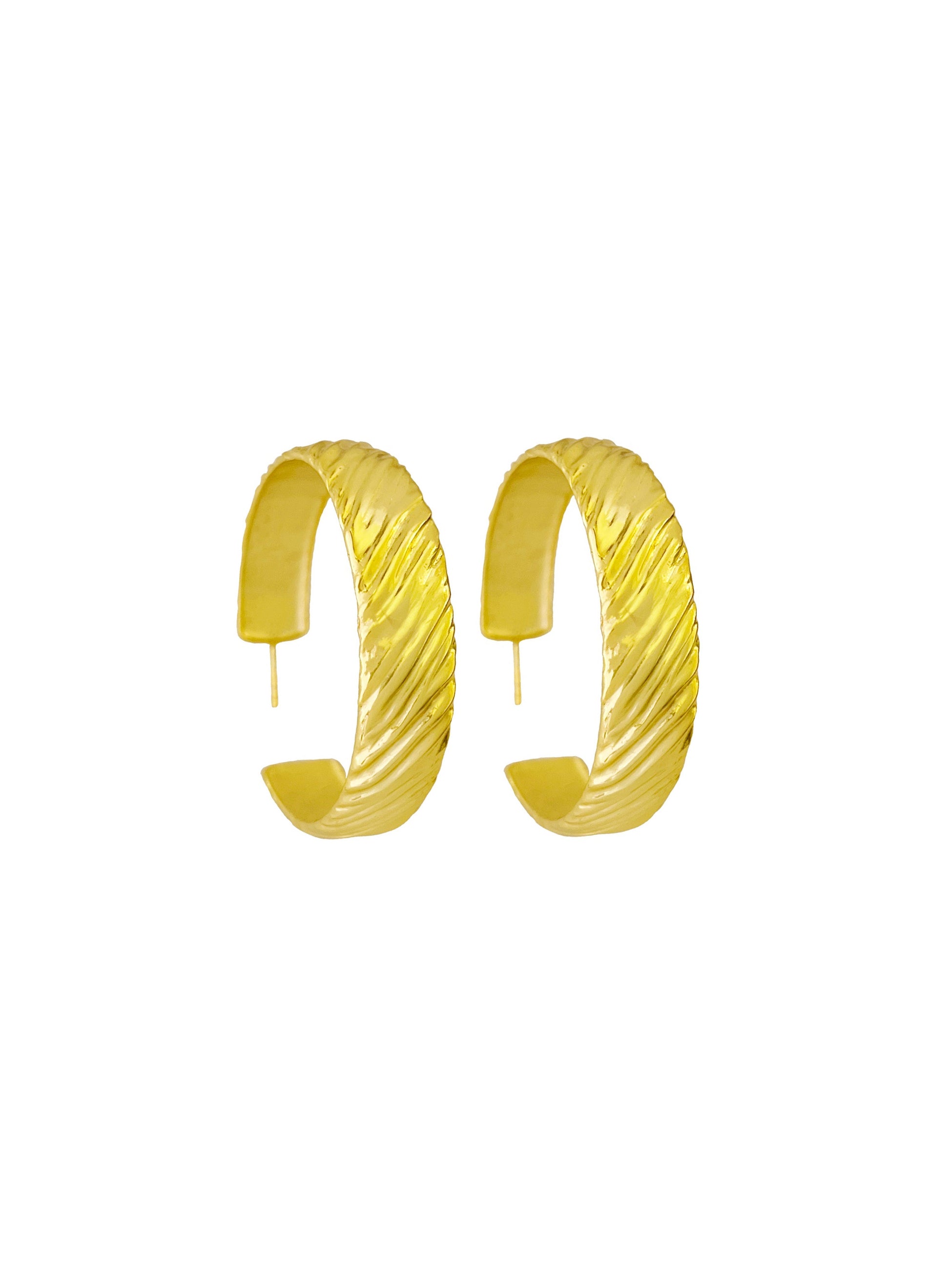 These hoops feature a delicate texture reminiscent of moonlit ripples on a tranquil lake, adding an ethereal touch to any ensemble. Crafted in brass and further accentuated with 18-20k gold, they are perfect for elegant and everyday occasions.