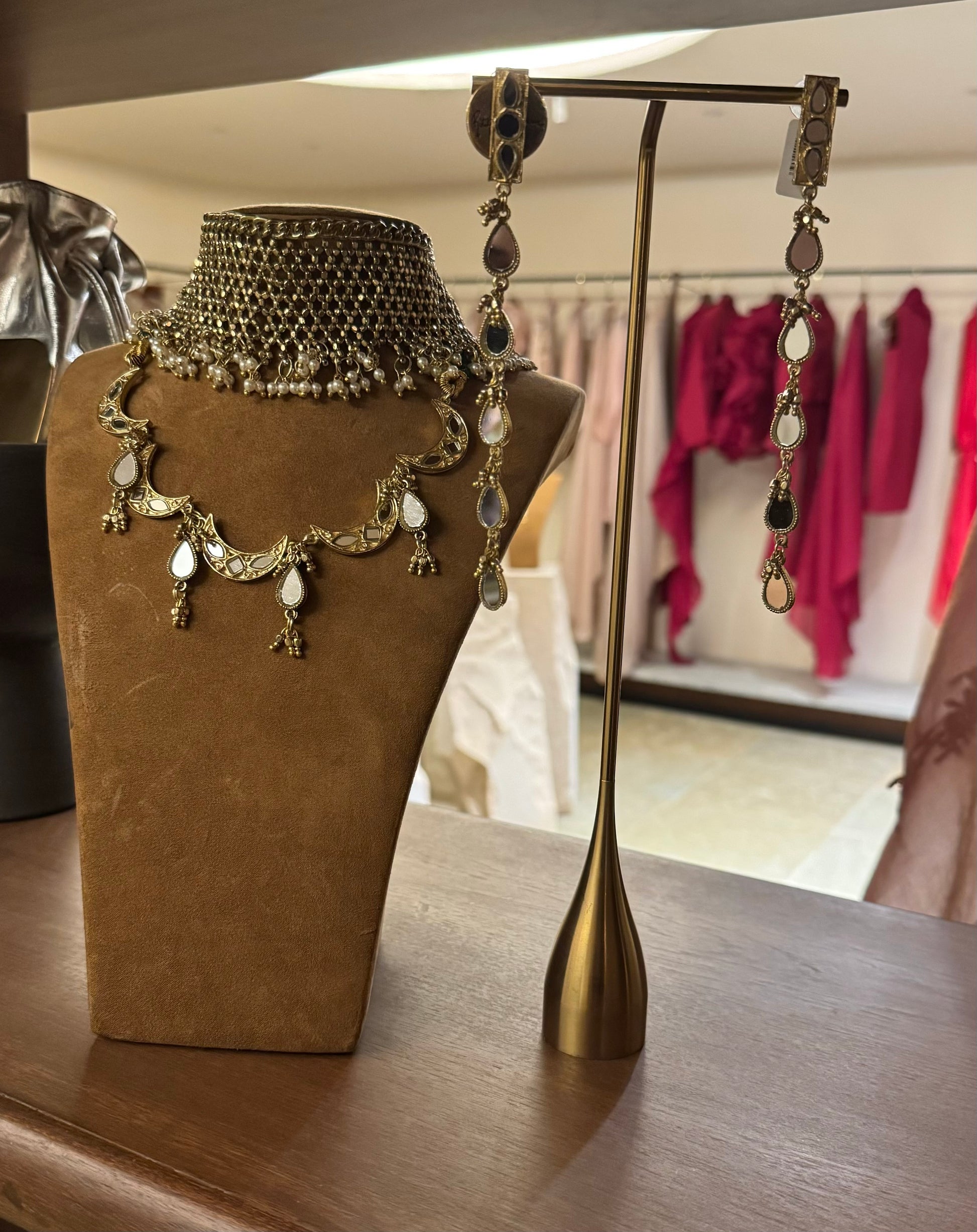CARE: Avoid contact with moisture, perfume, nail polish removers, or hairspray. Store in a cloth pouch.