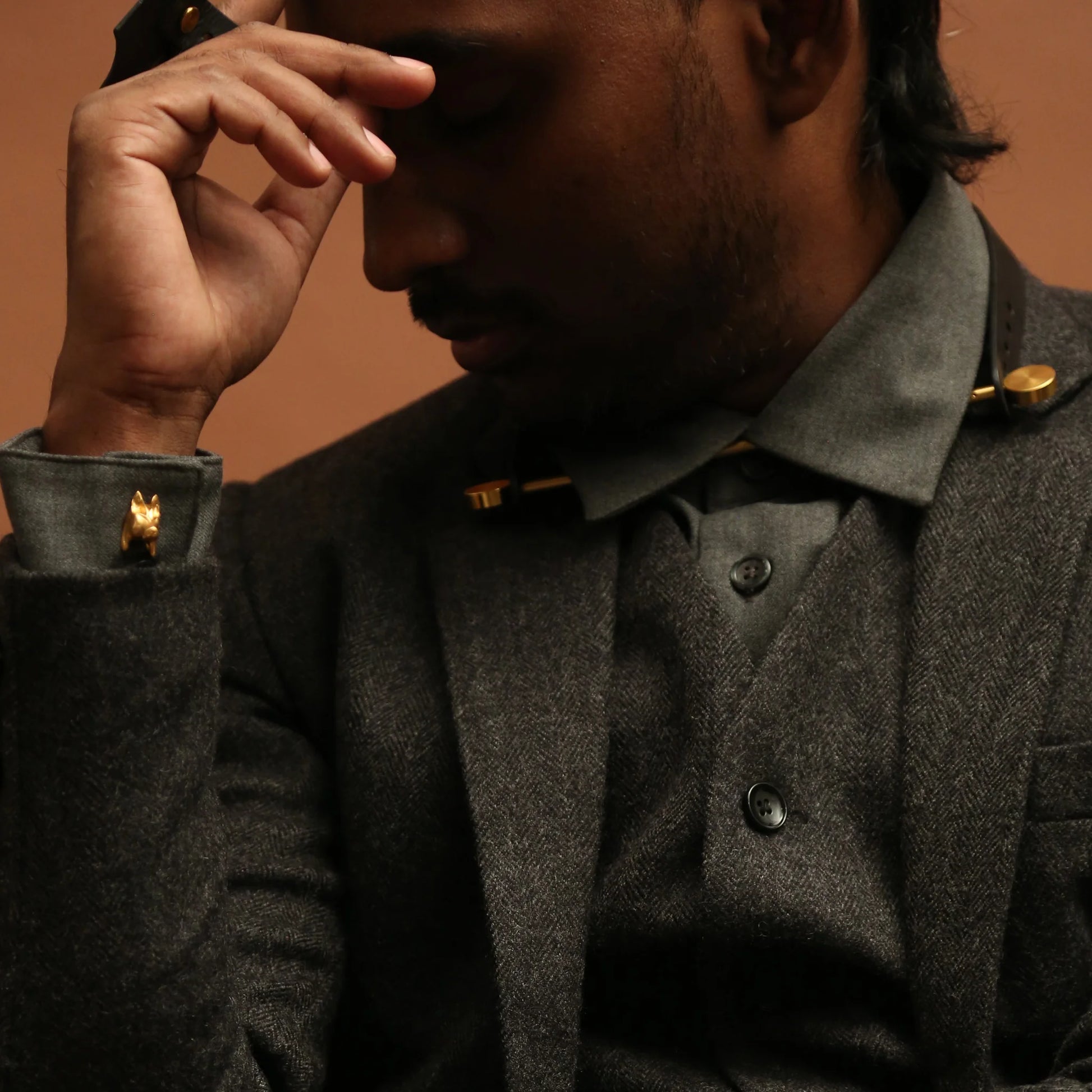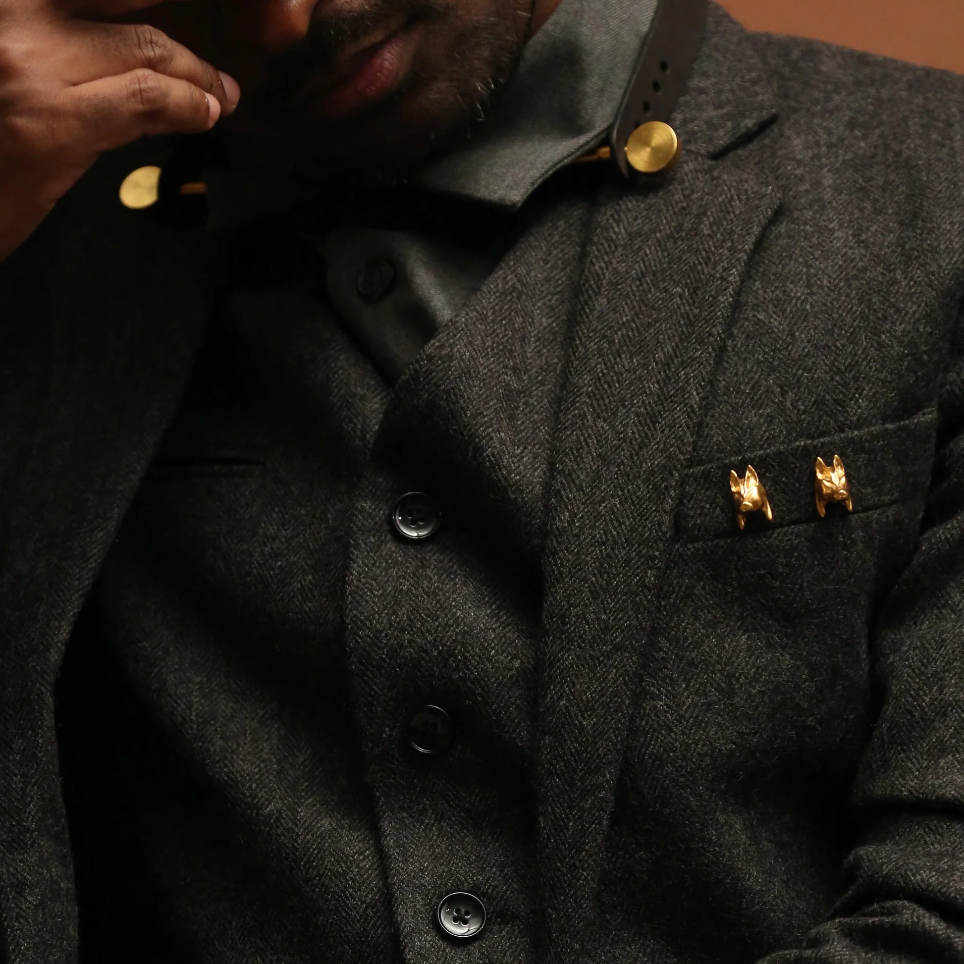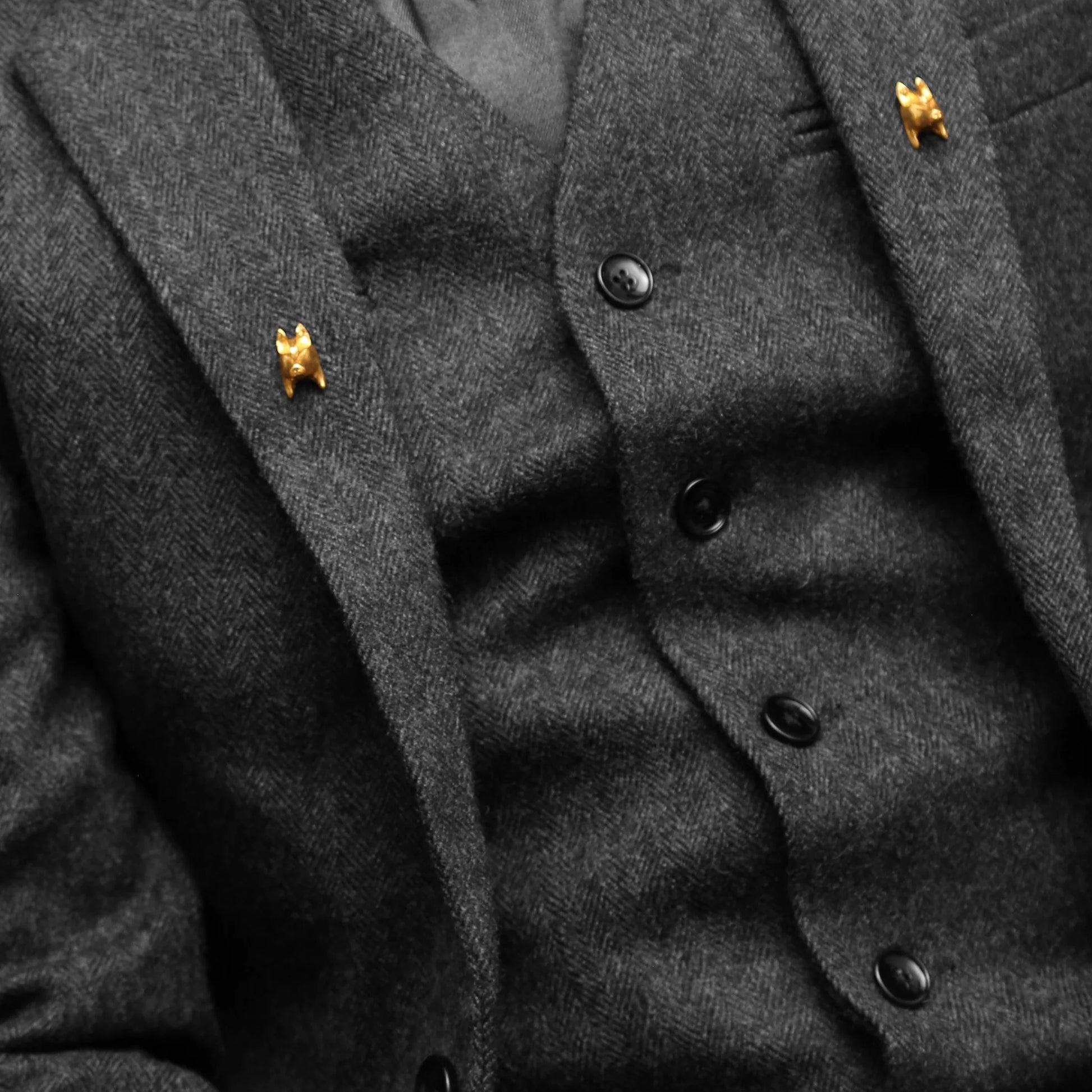 Versatile and daring, the Rogue Brooch Pinsfeature bold wolf motifs crafted in gold-plated brass. Pin them on a suit lapel, tuck them onto a pocket for a subtle edge or accentuate your cuffs.