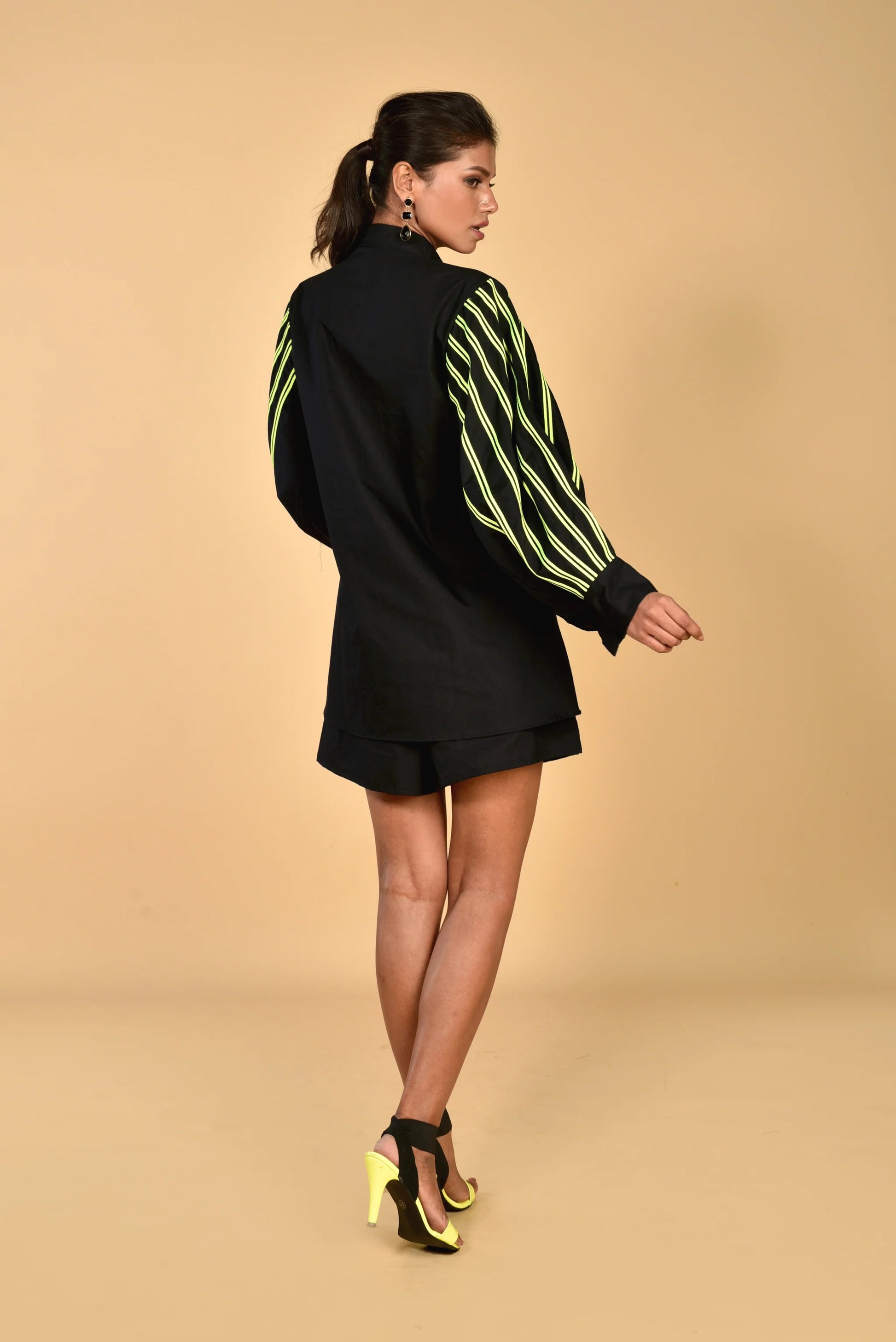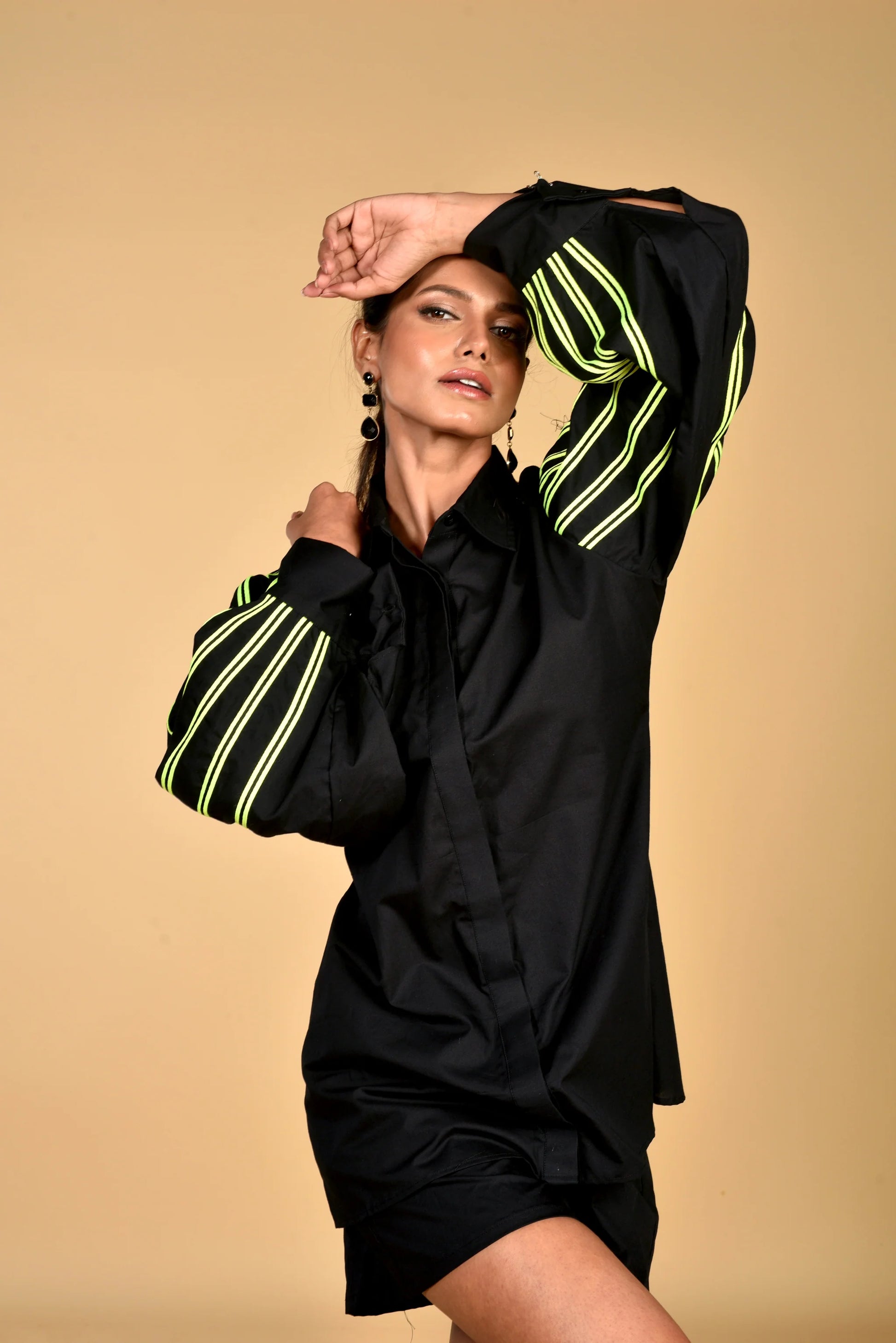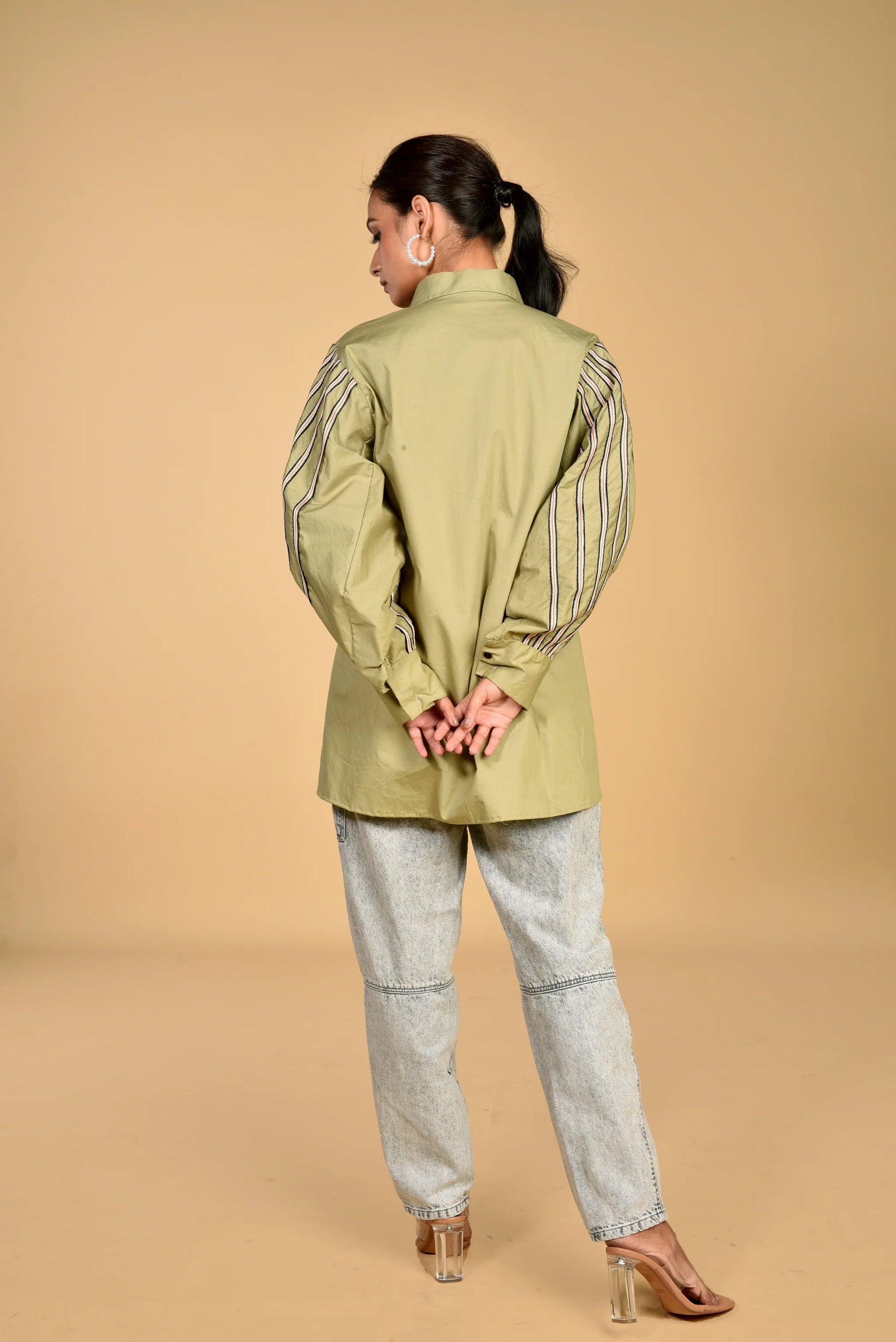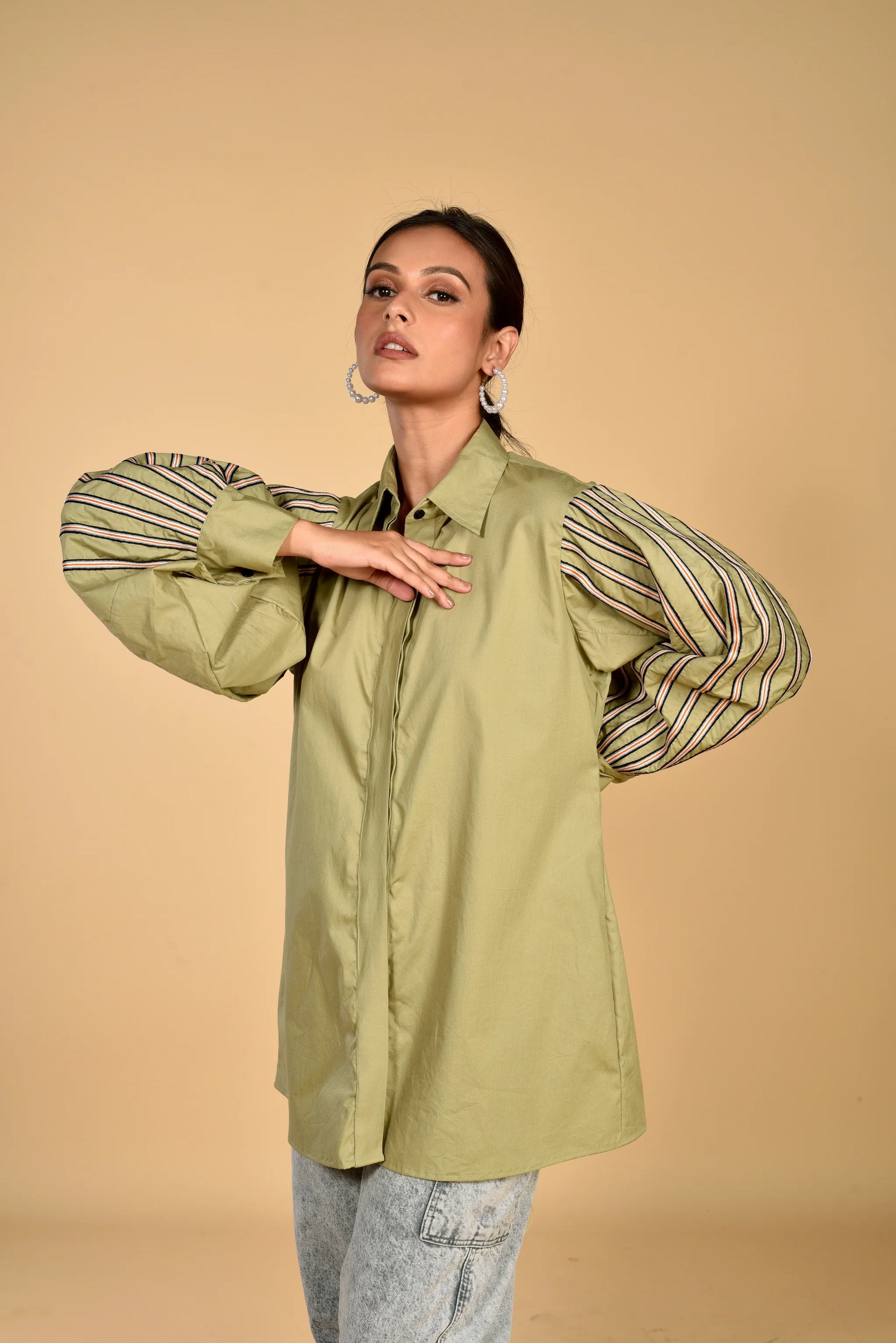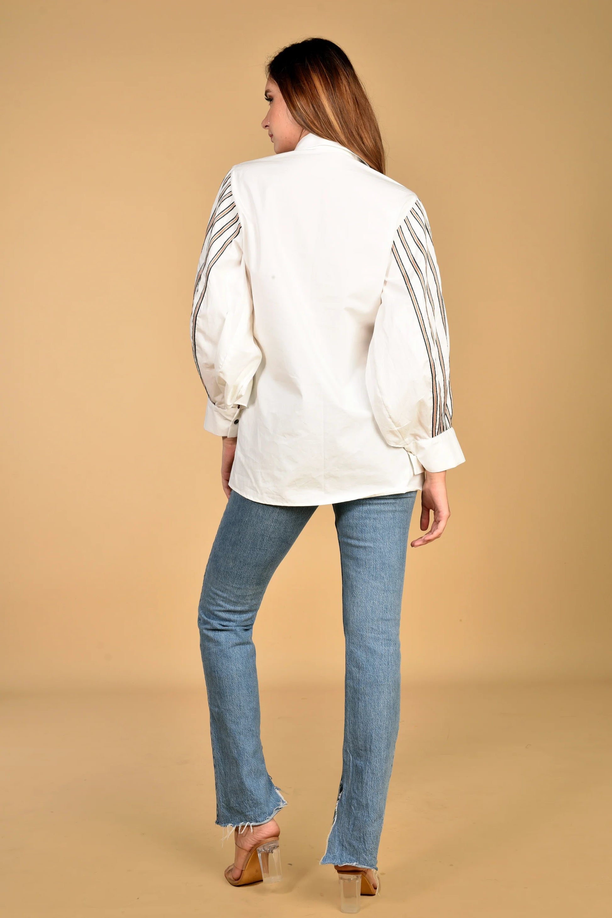 The Selena shirt features a balloon sleeve with striped border detailing that gives a classic shirt a unique and captivating appeal.