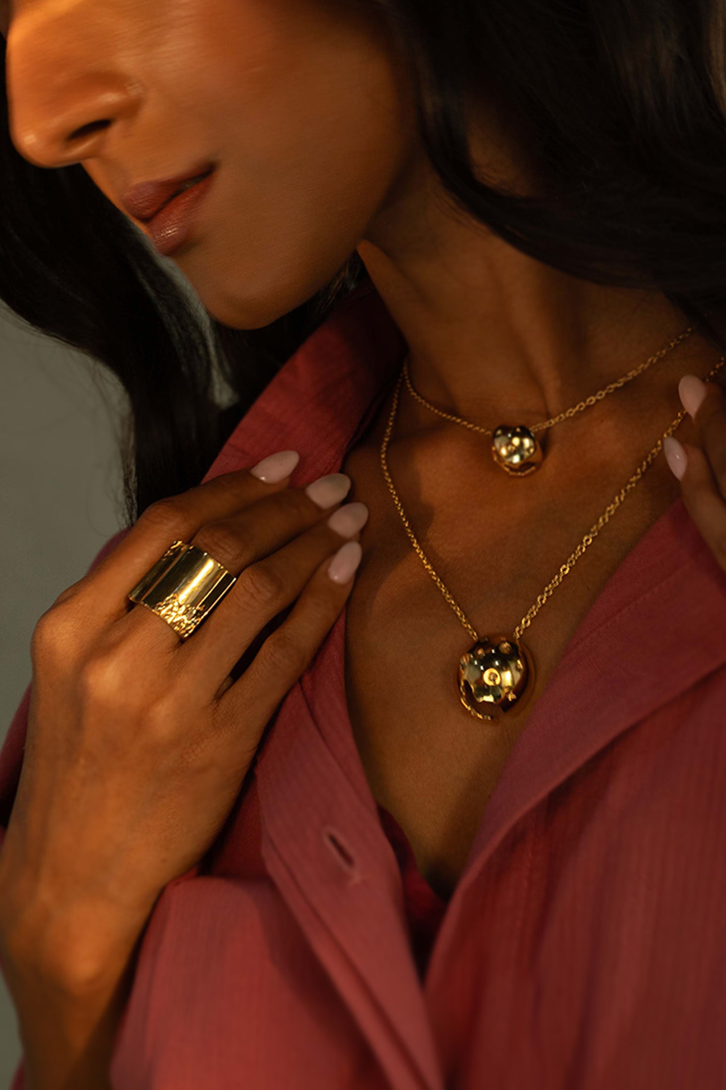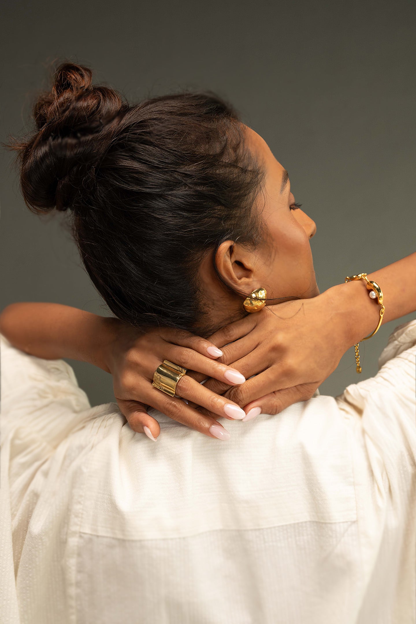 The Starke collection is a canvas to a portrait of sea waves leaving its impression on the shore. The rich handcrafted texture on the ring is an ode to our artisanry skills that bring to life this bold yet elegant piece of jewellery.