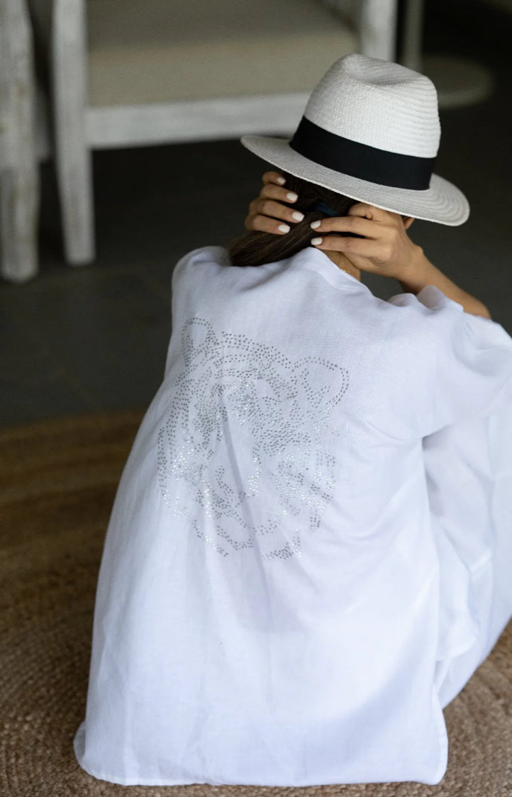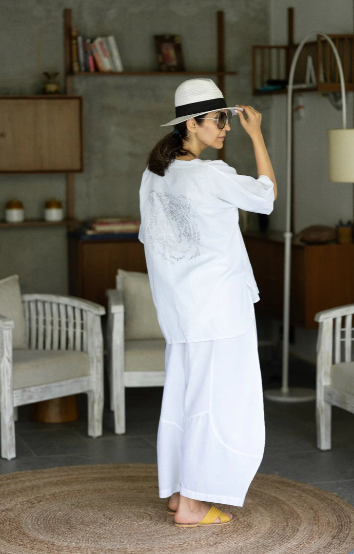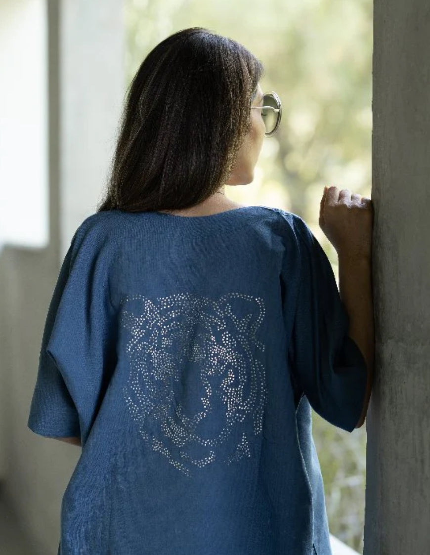 Make a statement in this breathtaking Tiger Safari Pant-Suit with our signature badla work at the back. Crafted in comfortable cotton - linen and designed as a co-ord set, this striking piece is sure to turn heads.Brand: Zanzibar Fabric: Natural linen and coloured with organic dyes