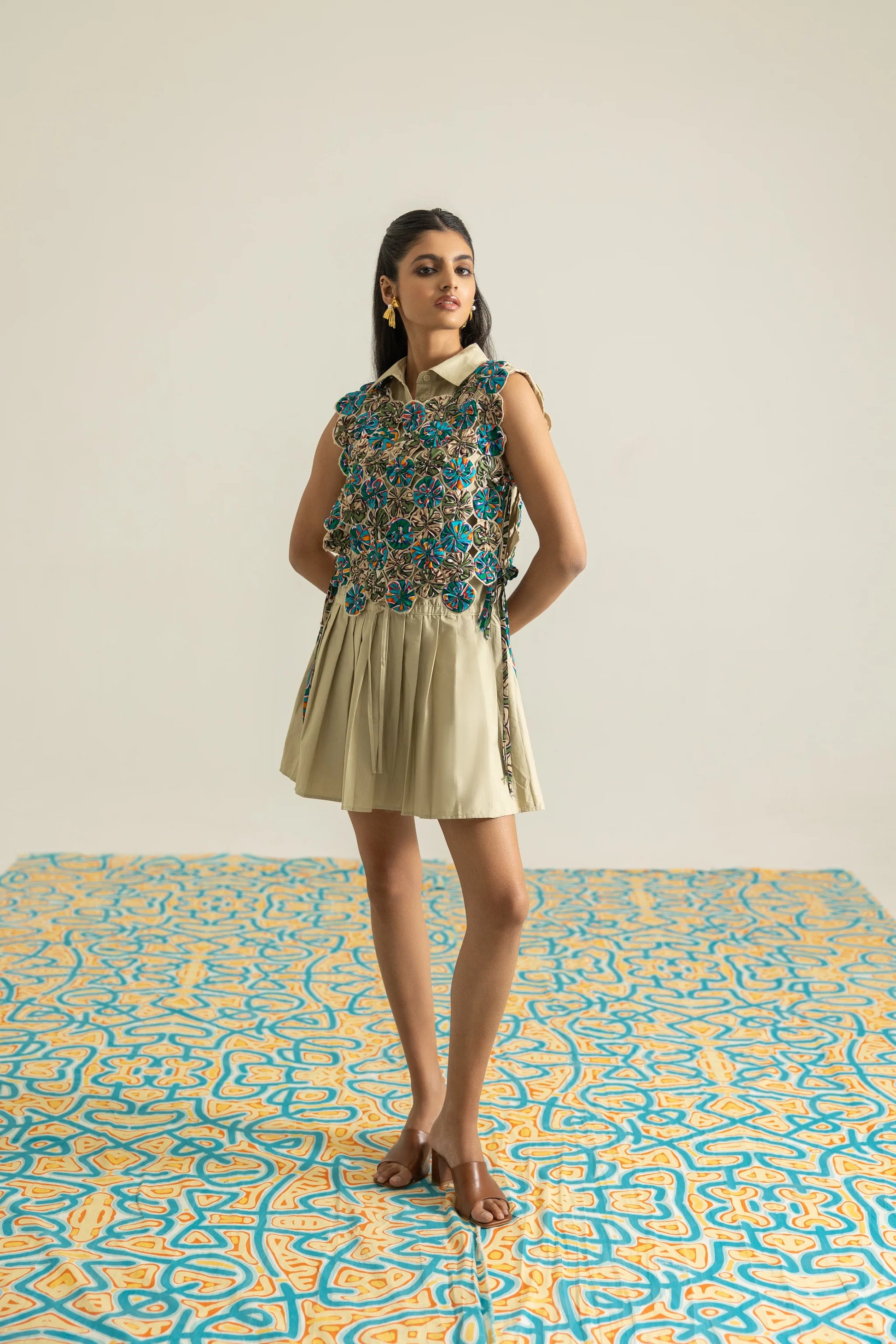 Androgynous Design: An effortlessly cool, unisex style that breaks boundaries. Super Stylish: Eye-catching, fashion-forward design that makes a statement. Easy to Wear: Simple, effortless styling for any occasion. Round Smocked Fabrics: Unique, textured fabric adds depth and visual interest. Tie-Up System: Adjustable, side tie-ups ensure a secure, comfortable fit. Fabric-Satin.