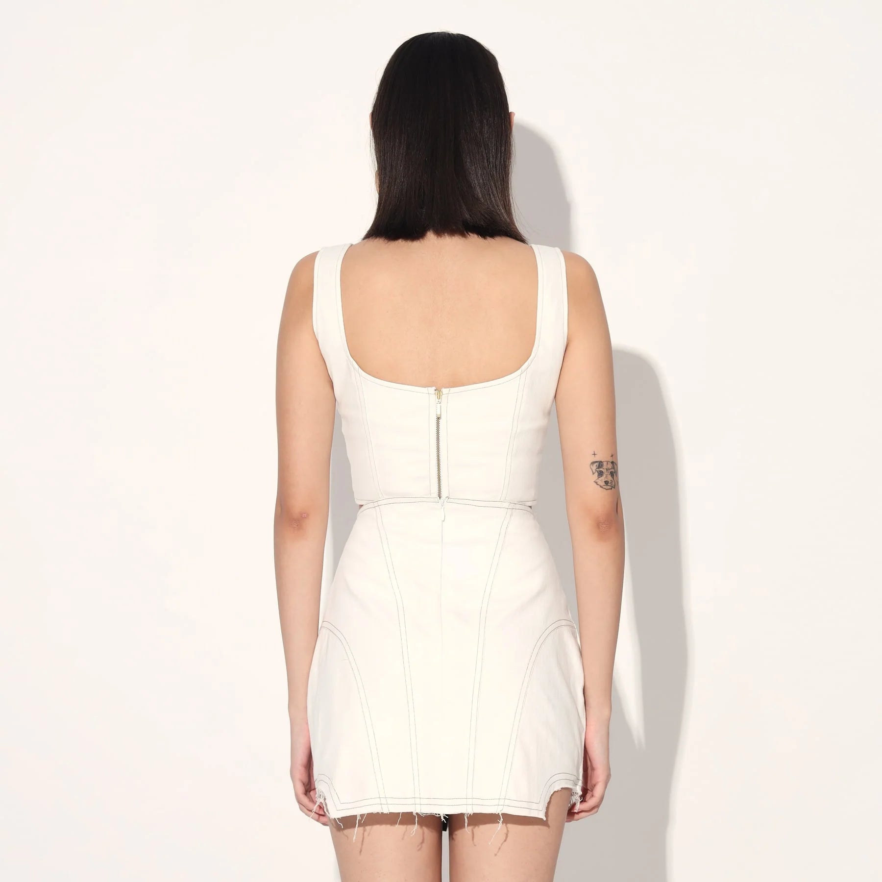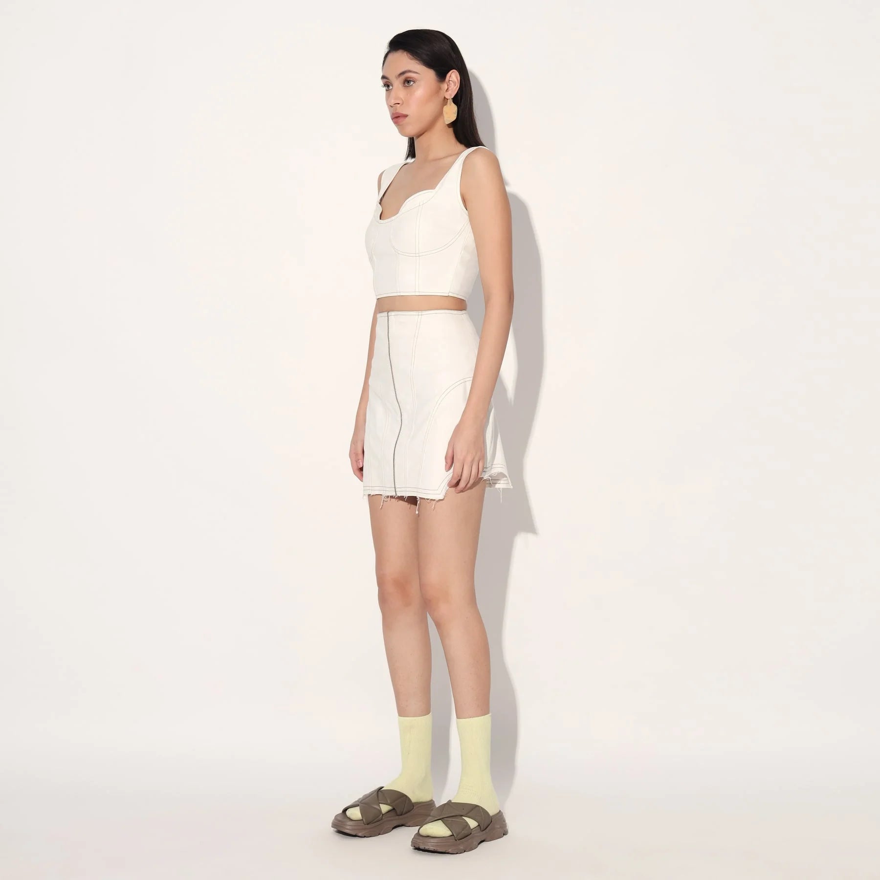 A fresh, chic set with engineered seams and a zipper detail on the skirt.